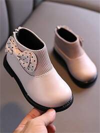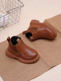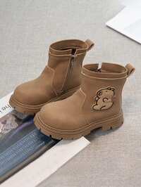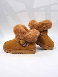 Botas cortas de color caqui, modelo 2025, adecuadas para niños y niñas de 3 a 12 años, con parte superior de cuero sintético, forro térmico cálido, suela antideslizante y duradera, estilo de fácil puesta, botas cortas planas básicas, botas de nieve para niños, artículo esencial para la escuela, salidas de invierno y atuendos navideños.