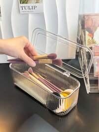 madeby BLANCCaja de almacenamiento de plástico transparente con tapa de bambú 2 en 1, organizador de maquillaje de escritorio con doble orificio redondo, caja de almacenamiento de cosméticos transparente con compartimentos duales - Caja de almacenamiento de tocador moderno con tapa, organizador de vanidad de baño, adecuado para brochas de maquillaje, lápices labiales, bolsa de herramientas de belleza, bolsa de maquillaje, bolsa de aseo, organizador de escritorio, bolsa de cosméticos, bolsa de maquillaje, organizador de maquillaje, accesorios de tocador, bolsa de maquillaje, bolsas de maquillaje, joyero, bolsa, soporte para brochas de maquillaje, soporte para brochas, organizador de perfumes, bolsa, regalos para mujeres, regalos de Navidad, ideas de regalo para mujeres, decoración de habitación NEW