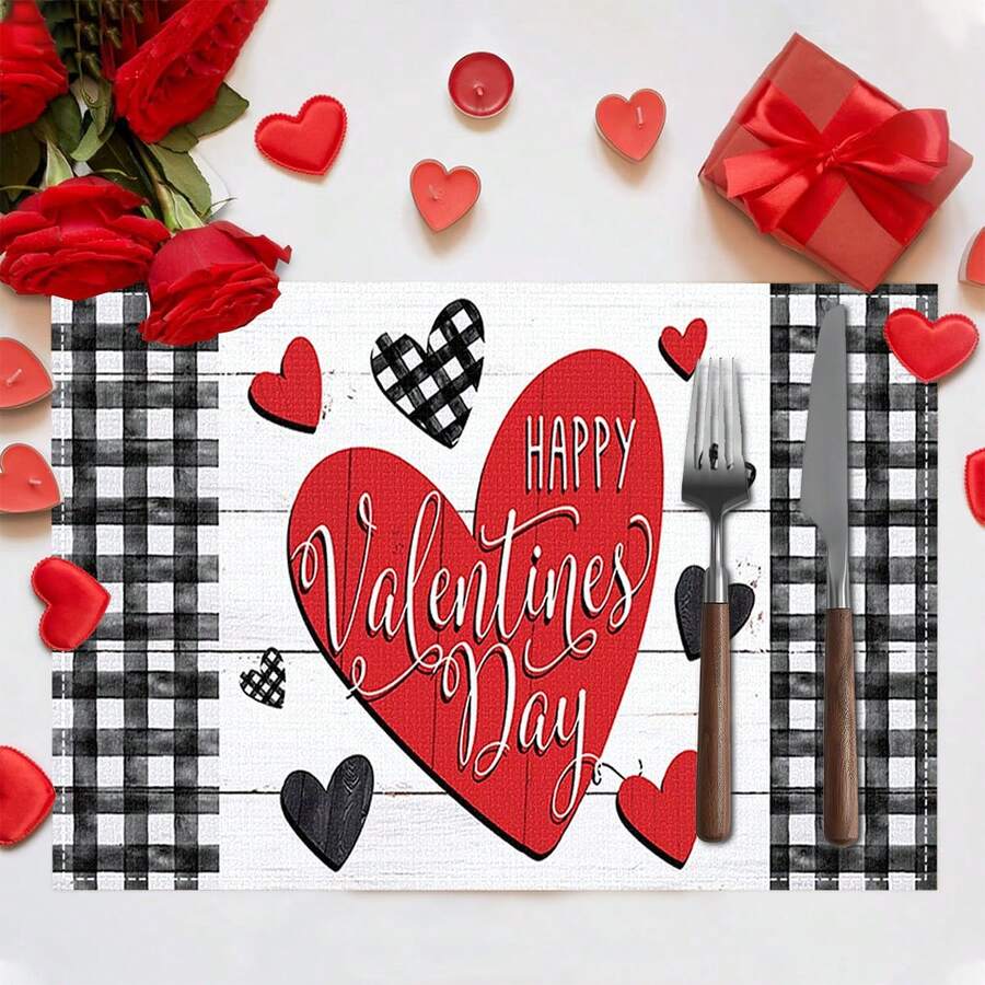 1/4/6 piezas Manteles individuales de lino, el lino se puede lavar a máquina, diseñado en Estados Unidos el Día de San Valentín, utilizado para la decoración de la mesa de la cocina.