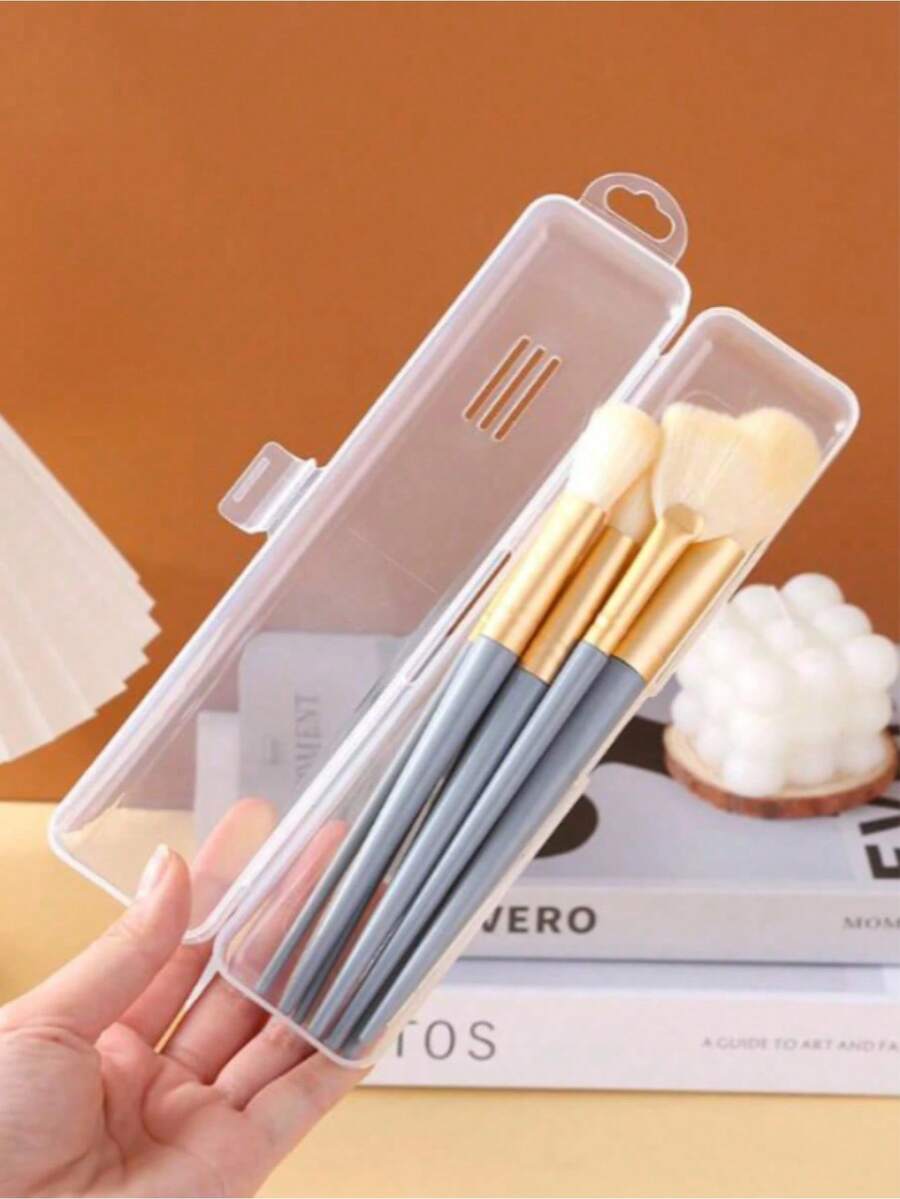 1 pieza/2 piezas/5 piezas Estuches portátiles transparentes para pinceles de maquillaje - Diseño con tapa abatible montada en la pared, estuche de cosméticos portátil a prueba de polvo con gancho colgante, decoración de habitación, bolsas, bolsa de maquillaje, tocador, viaje, bolsa de maquillaje, organizador, almacenamiento, artículo de viaje esencial, organizador de maquillaje, bolsas de maquillaje, neceser