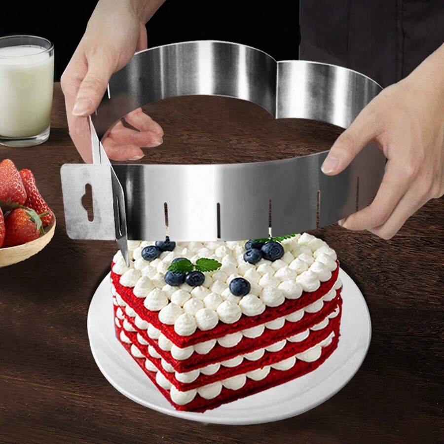 1 pieza Molde ajustable en forma de corazón de acero inoxidable para mousse, molde para hornear herramienta DIY