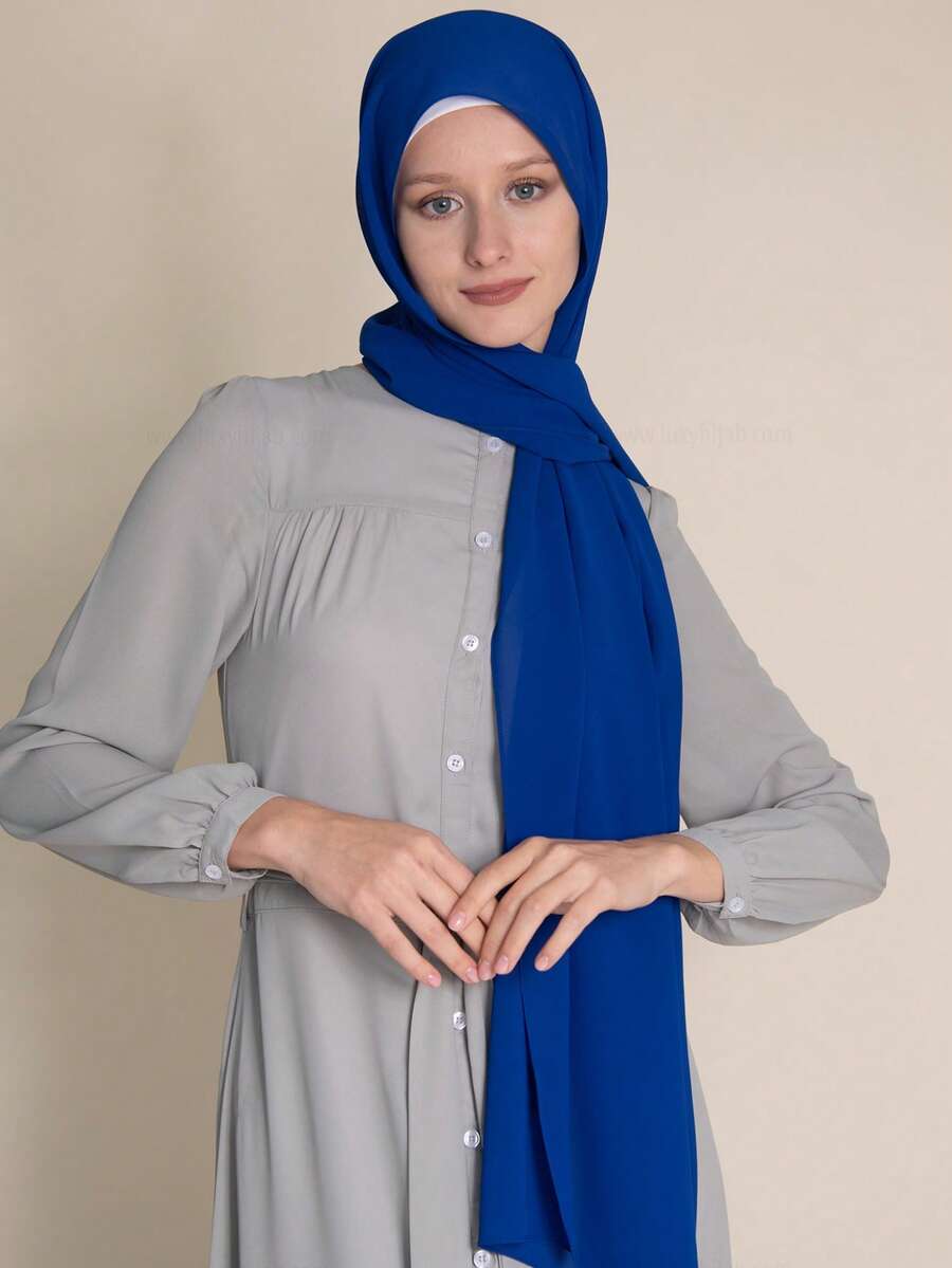 1 pieza Hiyab de mujer de unicolor con decoración de perlas, chal de gasa suave, adecuado para uso diario casual en invierno y otoño, accesorio para abayas y ropa con velo