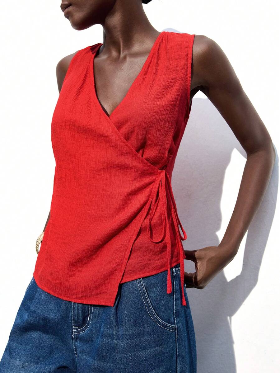 Maija Blusa de mujer con lazo envolvente y asimétrico, nueva para otoño/invierno 2025. Elegante, urbana, romántica y refinada, con estilo Y2K, para festivales de música country, viajes, bodas, cumpleaños, negocios, oficina, citas, salidas, aeropuerto, regreso a la escuela, otoño/invierno
