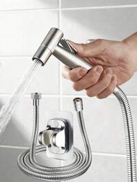 Juego de 6 piezas de rociador de bidé moderno 2 en 1 multifuncional, kit de rociador de inodoro montado en la pared de alta presión, válvula de 3 vías de doble control y doble entrada de agua, boquilla de limpieza de baño portátil, bloqueo giratorio de liberación rápida montado en la pared, superficie pintada, manguera retráctil y soporte. Adecuado para descarga de baño, limpieza de ducha, baño doméstico, aseo y cocina. Actualiza tu baño, accesorio de baño moderno esencial, regalo ideal para ocasiones especiales. 1 Set de rociador de bidé de acero inoxidable, incluye rociador de bidé, manguera, soporte adhesivo para ducha, válvula de ángulo 1-a-2, rociador de limpieza para mascotas, limpiador de inodoro de mano, pistola de agua a presión, manguera de cable de teléfono, accesorios de baño, herramientas de baño