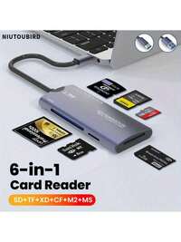 Yixuanguangdian1 pieza Lector de tarjetas multifunción 6 en 1 Niutoubird, interfaz dual USB/Tipo-C, adaptador de transferencia de datos de alta velocidad de 5 Gbps, compatible con tarjetas de memoria SD/TF/XD/CF/M2/MS, adecuado para cámara, portátil, teléfono inteligente, PC, plug and play, sin necesidad de controlador, lector de tarjetas portátil