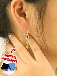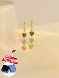 1 par de pendientes personalizados con piedra natal en forma de corazón, pendientes con 2-4 piedras natales personalizadas, regalo de joyería personalizado, de plata, con estilo, sencillo, neutral, casual, lindo, personalizado, único, es el regalo ideal para él, es el regalo ideal para ella, novia, madre, familia, amigos, apropiado para aniversarios, cumpleaños, ceremonias de graduación, bailes, fiestas 1 par de pendientes personalizados con flor, texto + piedra natal, piedra natal, circonita de colores, pendientes de doble colgante de moda, de acero inoxidable chapado en oro de 18k, incluye cajas de regalo exquisitas, como collares de regalo para el Día de San Valentín, Navidad, Pascua, Día de la Madre, joyería personalizada exclusiva