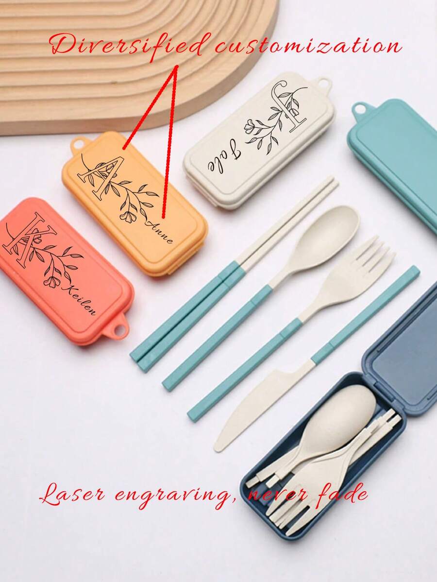 Juego de vajilla reutilizable de paja de trigo personalizado, gran regalo para hijo, hija, padres, abuelos, amigos, novia, compañeros de trabajo