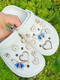 Surtido de decoraciones de resina suave y multicolor para zapatos y botas, con clips desmontables - mariposa, cuentas, corazón, pentágono, letras, etc. Con miles de estilos - Dijes para decorar sandalias, pantuflas, botas - Perfectos para regalos de Pascua, cumpleaños, San Valentín, Día de la Madre, Halloween - Cuentas y diseños de piedras rhinestone brillantes en plata, oro, morado, rosa - Para mujeres, clips para zapatos, joyas para zapatos, tachuelas y decoraciones para zapatos 5/10/15 piezas