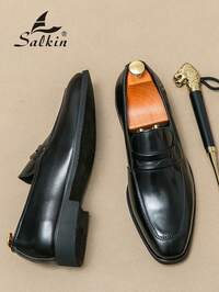 Abfuber Official StoreSalkin Mocasines clásicos y retro para hombres, zapatos elegantes de vestir para caballeros con sensación de alta gama asequible, parte superior transpirable, suela duradera, adecuados para ocasiones casuales, de oficina, de boda, de graduación, de fiesta, primavera/verano/otoño, talla grande tallas formales/de negocios formales