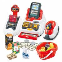 Juego de caja registradora de supermercado para niños - Incluye caja registradora de juguete, comida y bebidas de juego, escáner y pago, experiencia de juego de roles (sin dinero falso) - Simula la compra en el supermercado, interacción entre padres e hijos