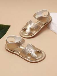 Balabala Flagship Store1 par de sandalias ajustables estilo romano para niñas pequeñas, color dorado, de punta abierta, planas, antideslizantes, de moda, de lujo, cómodas, adecuadas para niños de 3 a 15 años, para playa/casual, primavera/verano 2025