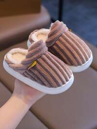 Pantuflas de niños con cierre deslizante, sencillas y de moda, zapatos mullidos para interiores del hogar, para otoño/invierno, resistentes a la suciedad, antideslizantes, suela gruesa, tallas pequeña/mediana/grande, para niños/niñas, niños pequeños, botas forradas cálidas para uso en exteriores