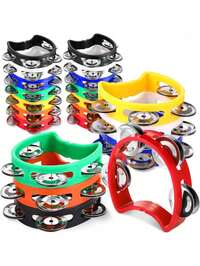 1 pieza Pandereta de mano de 6/8/10 pulgadas, con cascabeles de doble hilera, instrumento de percusión Orff, ideal para karaoke, fiestas, regalos navideños, pandereta de una hilera, instrumento musical.