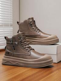 GAISIMABotas altas para hombre, nueva temporada otoño e invierno, suela gruesa que aumenta la altura, antideslizante, resistente al desgaste, puntera redonda, cordones y cremallera lateral, gran talla 46, combinación de colores, costura de letra, de moda, uso en exterior, citas, fiesta, calle, fotografía callejera, senderismo y escalada de montaña 2025 Nuevas botas deportivas casuales para hombres, botas tácticas, botas de trabajo y versátiles, resistentes al desgaste, resistentes a la suciedad, con estampado de letras, de moda, adecuadas para vaqueros, oficina, uso diario, obra, exterior, estilo británico