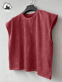 SUMWONSUMWON Camiseta de tirantes con cuello en V, borde deshilachado, esencial básico de verano, atlética, corta, con acabado crudo, musculosa, para hacer ejercicio, gimnasio, casual, deporte urbano