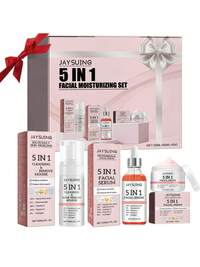Set de 5 piezas de Esencia Facial, Crema, Tónico, Crema para Ojos y Espuma Limpiadora de la marca Laikou de Japón, nutritivo, refinador de poros, iluminador, hidratante, antienvejecimiento, esencial de viaje, regalo de cuidado de la piel SPA para mujeres, madres, esposas, hermanas, niñas, novias, Día de la Madre Set de 5 piezas de cuidado de la piel con esencia de arroz, tamaño de viaje, conveniente de llevar, caja de regalo de cuidado de la piel hidratante, incluye esencia de arroz, esencia iluminadora e hidratante, tónico diario, espuma limpiadora, crema de noche, suero, adecuado para todo tipo de piel, regalo de vacaciones