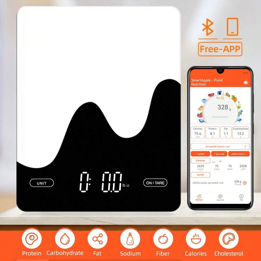 Báscula de cocina inteligente con calculadora nutricional, aplicación gratuita con seguimiento de 30 nutrientes, calorías, proteínas, peso digital en gramos y onzas para pérdida de peso, recargable, 22 libras