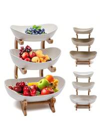 Cesta de frutas de 3 niveles - Organizador de almacenamiento para encimera de cocina, organizador de espacio multiusos para verduras y frutas, adecuado para mesa de comedor, armario de alimentos, cafetería - Diseño ondulado moderno, artículo de moda, esencial para cocinar en casa