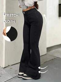 GirlismJeans acampanados negros de talle bajo, cómodos y holgados, estilo Y2K casual para adolescentes, para usar en otoño/invierno, atuendos diarios, ropa de calle, disfraces de Halloween, Navidad, jeans de invierno, jeans para adolescentes, ropa para Año Nuevo, atuendos casuales y elegantes