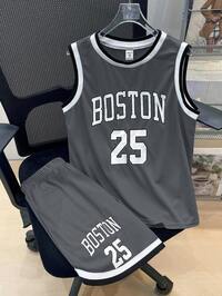 ZikoriConjunto de 2 piezas de top de manga corta con cuello redondo y estampado de letras deportivo casual y pantalones cortos de color contrastante, adecuado para atuendos de niños, ropa de niño pequeño, regreso a la escuela, conjuntos de niños para fiestas de cumpleaños, fiestas de noche, actuaciones, bodas, bautizos, ceremonias de apertura, uso diario, escuela, viajes, deportes, temporadas de primavera y verano