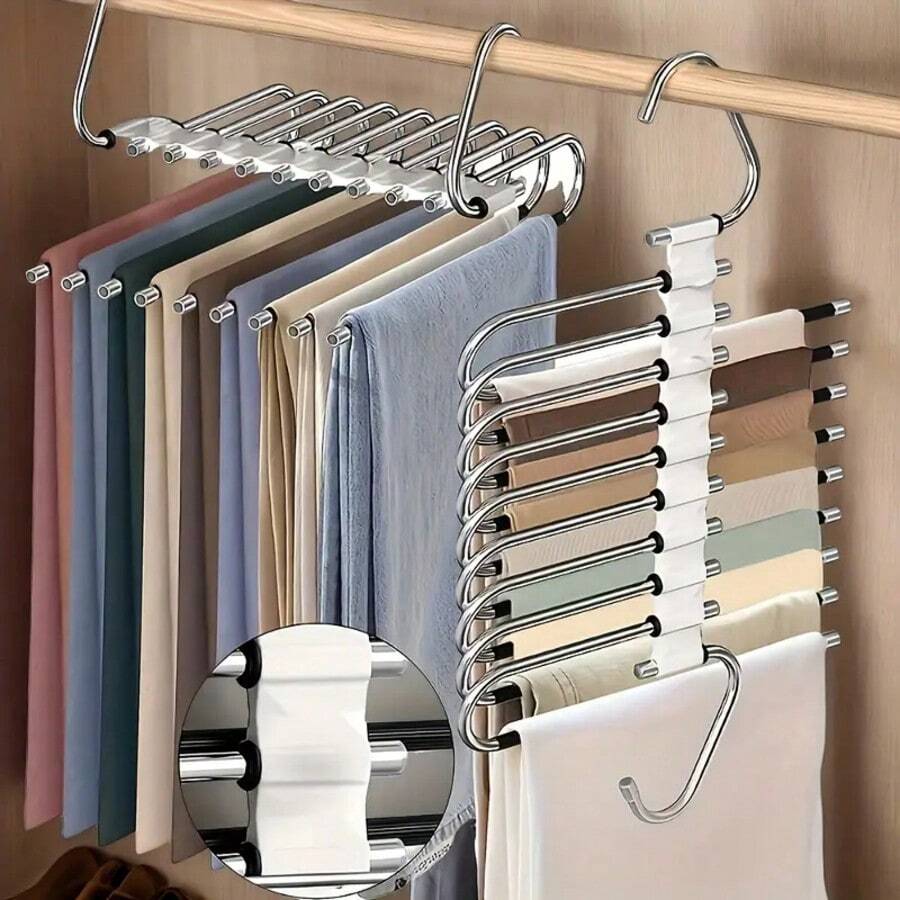 Percha de pantalones actualizada, percha de acero inoxidable multifunción antideslizante, la percha de pantalones también se usa como percha de ropa, percha de ropa de acero inoxidable antideslizante, estante de almacenamiento de armario, diseño ahorra espacio, adecuado para pantalones, vaqueros, leggings y pantalones de chándal, ideal para la organización del armario, beige, estilo navideño cómodo, organizador, esencial para dormitorio