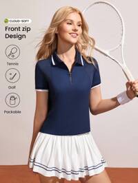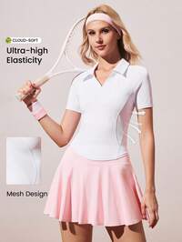 CourtClass Camisa polo ajustada para mujer, blanca, con cuello, de manga corta, de tela transpirable, adecuada para uso casual, correr, yoga, gimnasio, tenis, golf y talla grande