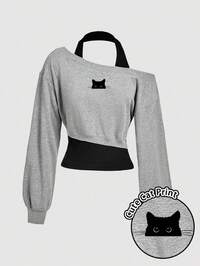 SIimple Retro StoreAttitoon Mono de cuello de polo con gráfico de logo pequeño de caballo en estilo minimalista casual, adecuado para otoño/invierno, estilo versátil, vintage, universitario, sexy, lindo, Y2K, chica de coco, bohemio, hippie, festival de música