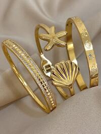 Ladies' Fashion JewelryPulsera de acero inoxidable chapada en oro de 18K con estrella de mar y concha de zirconia, adecuada para mujeres, regalo para la madre, para Navidad, Acción de Gracias, Halloween, boda, fiesta/baile/reunión/diario/accesorios de playa, aniversario, San Valentín, joyería bohemia, cumpleaños, regalo para dama de honor, accesorios de orgullo, sirena