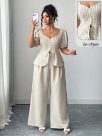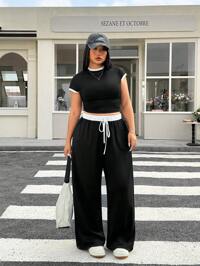 ElegantrixSHEIN VCAY Conjunto de 2 piezas de mujer talla grande con camisa de rayas azules y blancas y pantalones cortos de punto, para fiesta en la piscina, vacaciones de verano, estilo boho chic, ropa de mujer, conjuntos para brunch, aeropuerto, vacaciones de playa, vacaciones urbanas, ropa de verano europea, luna de miel, estilo South Beach, Amalfi, con juego de encaje, top de encaje