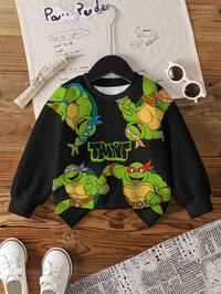 Genkimix KidsSHEIN 1 pieza Sudadera holgada con cuello redondo y estampado, manga raglán, estilo casual escolar, adecuada para camisetas gráficas, camisas de niños, camisetas lindas, uso diario, escuela, salidas, deportes, todas las estaciones, para niños pequeños